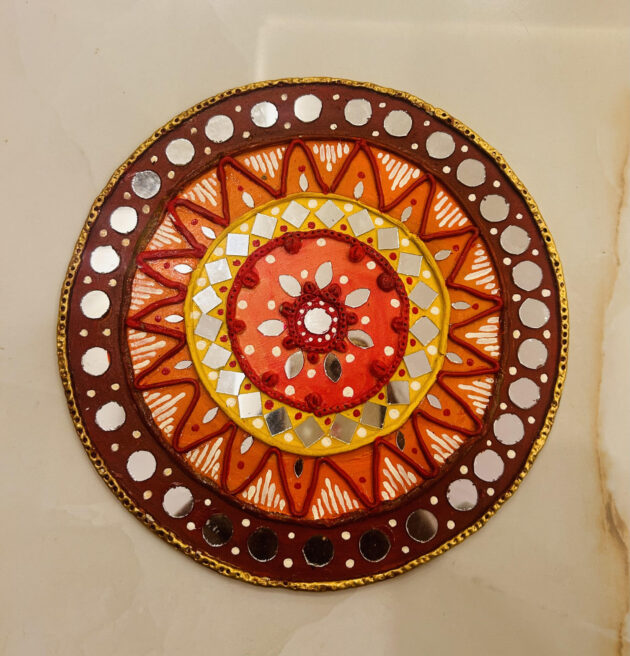 In “Autumn Splendor,” Lippon artistry takes center stage with its harmonious blend of earthy browns and vibrant oranges, reminiscent of the fall foliage. Each stroke of color is elevated by the delicate addition of glass and Kundan accents, adding a touch of opulence to the piece. The interplay of light and texture creates a captivating visual tapestry that captures the essence of the season’s beauty. As viewers behold this artwork, they are transported to a realm where nature’s warmth and richness come alive in every detail.