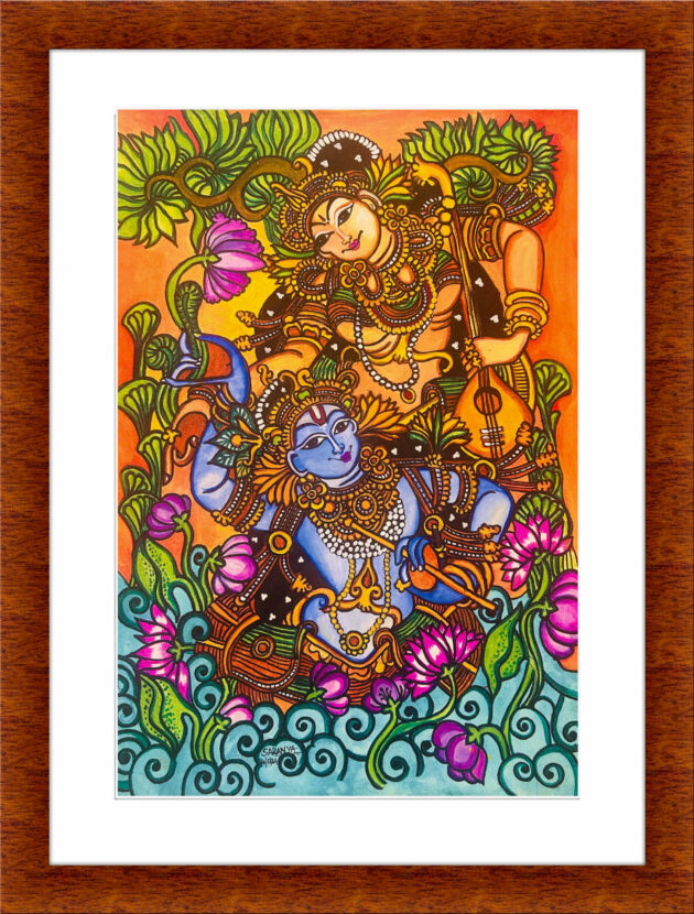 Celestial Harmony: This radiant painting captures the eternal bond between Radha and Krishna, symbolizing divine love, devotion, and the beauty of spiritual union.